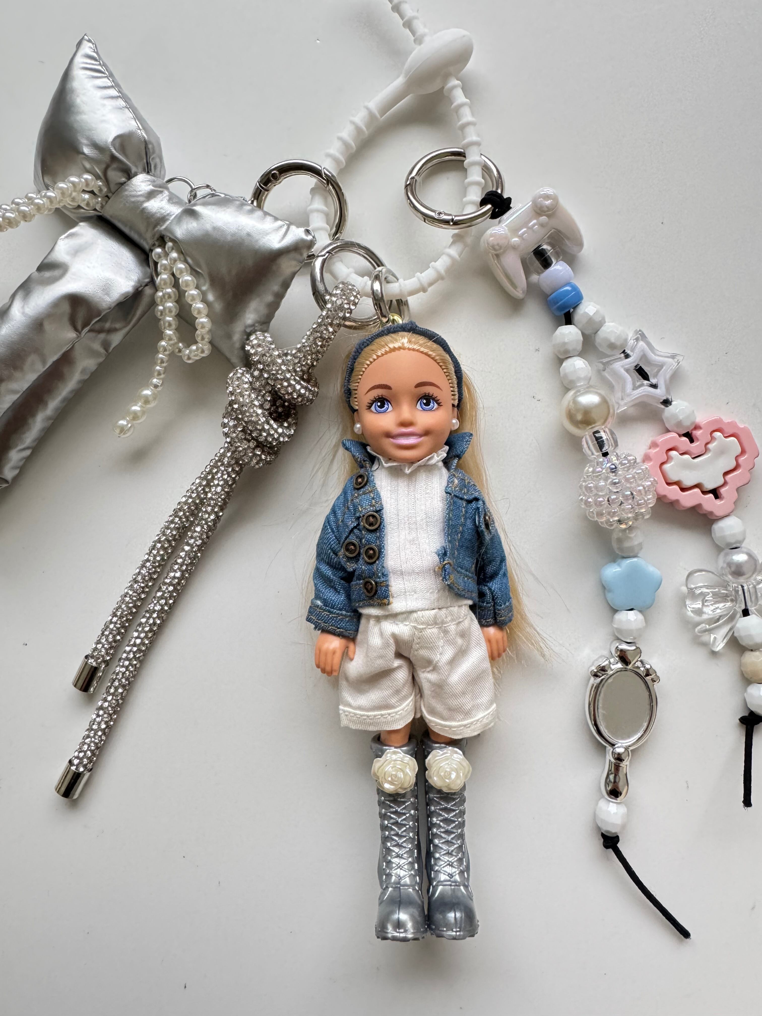 パーツは取り外しができますので、シンプルに人形だけ、その他キーホルダーと合わせてカスタマイズして、ぜひご自身だけのチャームをお楽しみください。