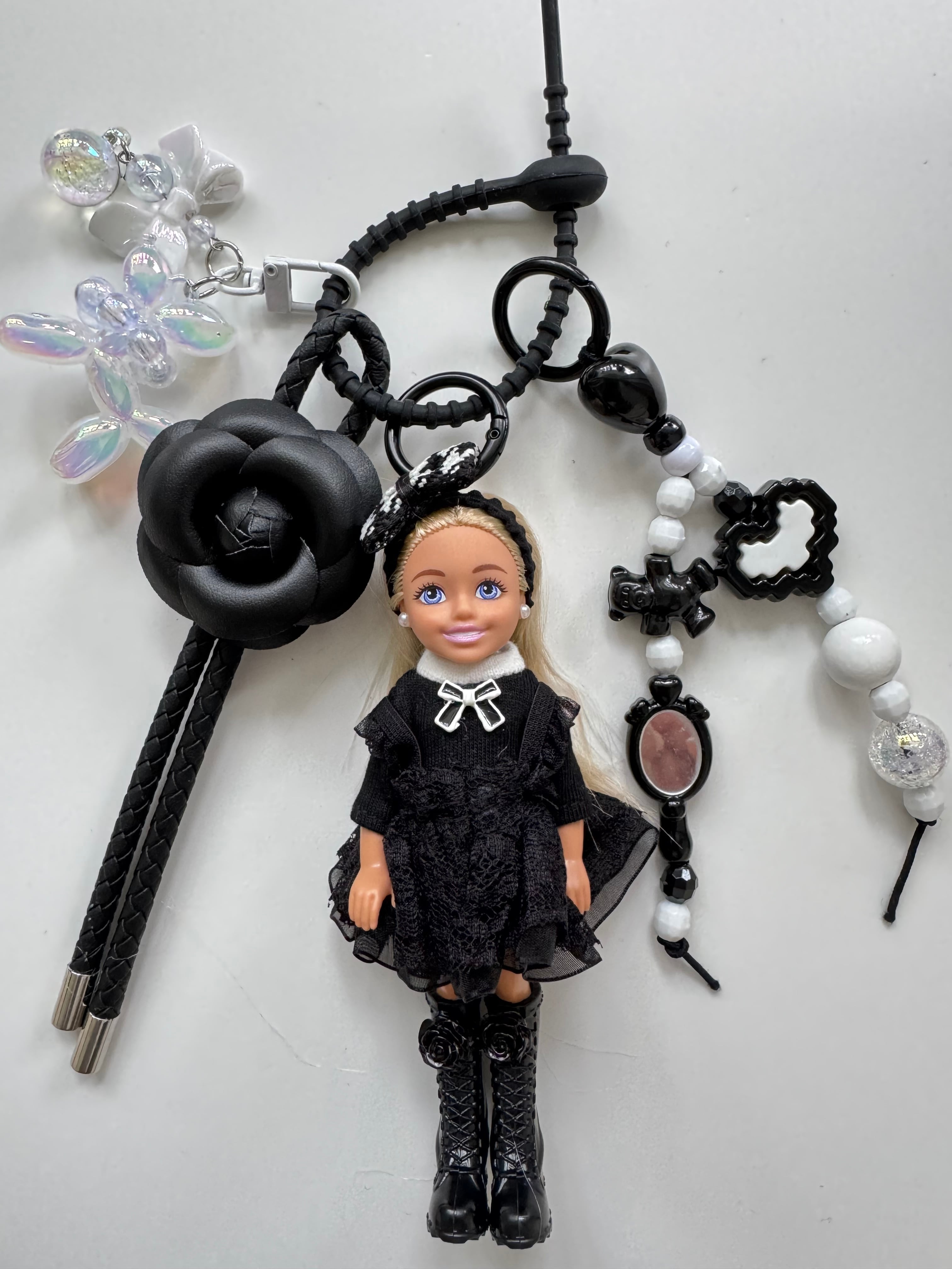 パーツは取り外しができますので、シンプルに人形だけ、その他キーホルダーと合わせてカスタマイズして、ぜひご自身だけのチャームをお楽しみください。