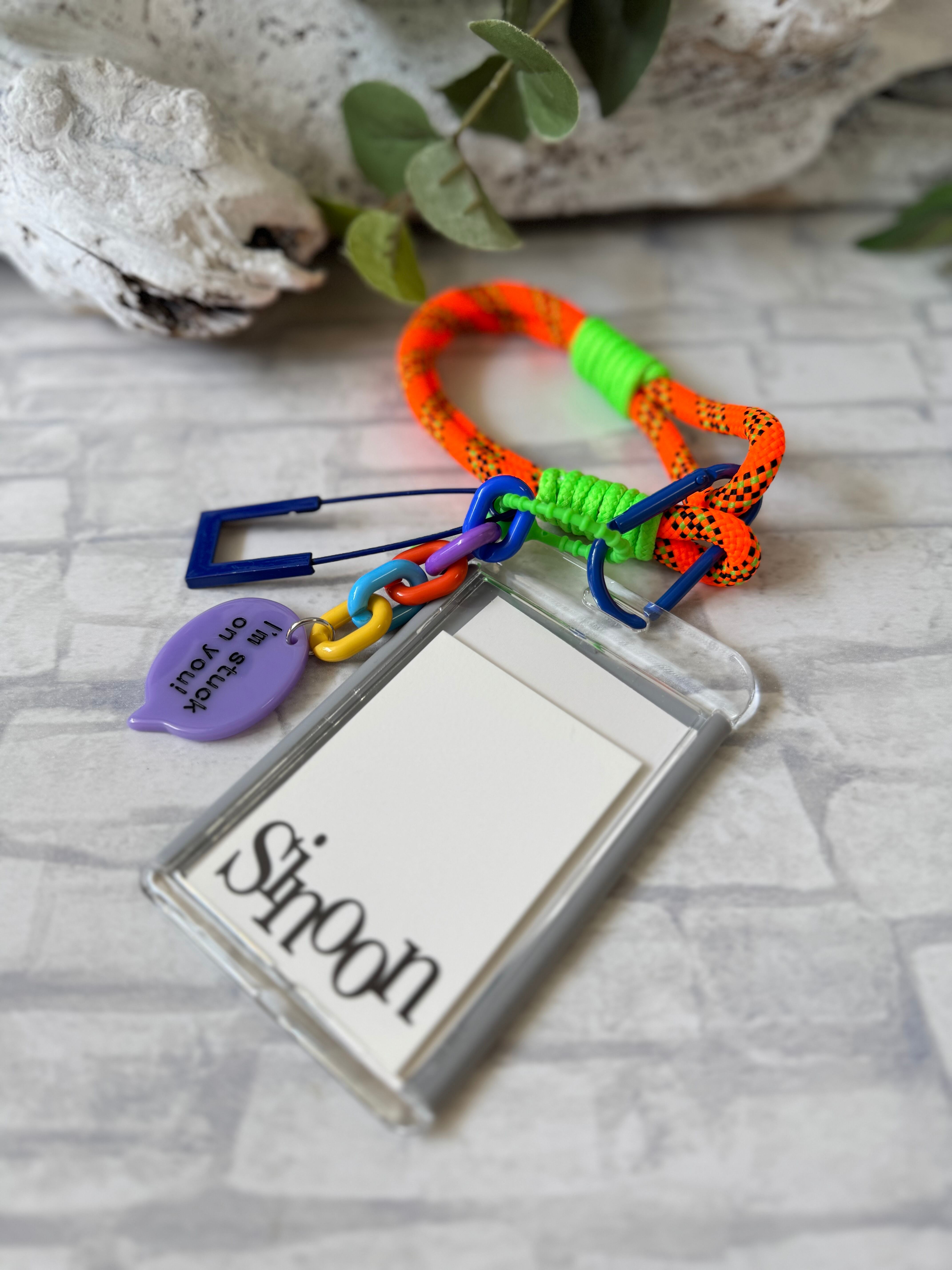 カラフルストラップが付いており、バッグの持ち手や内部のタブなどに引っ掛けて持ち歩きができます。