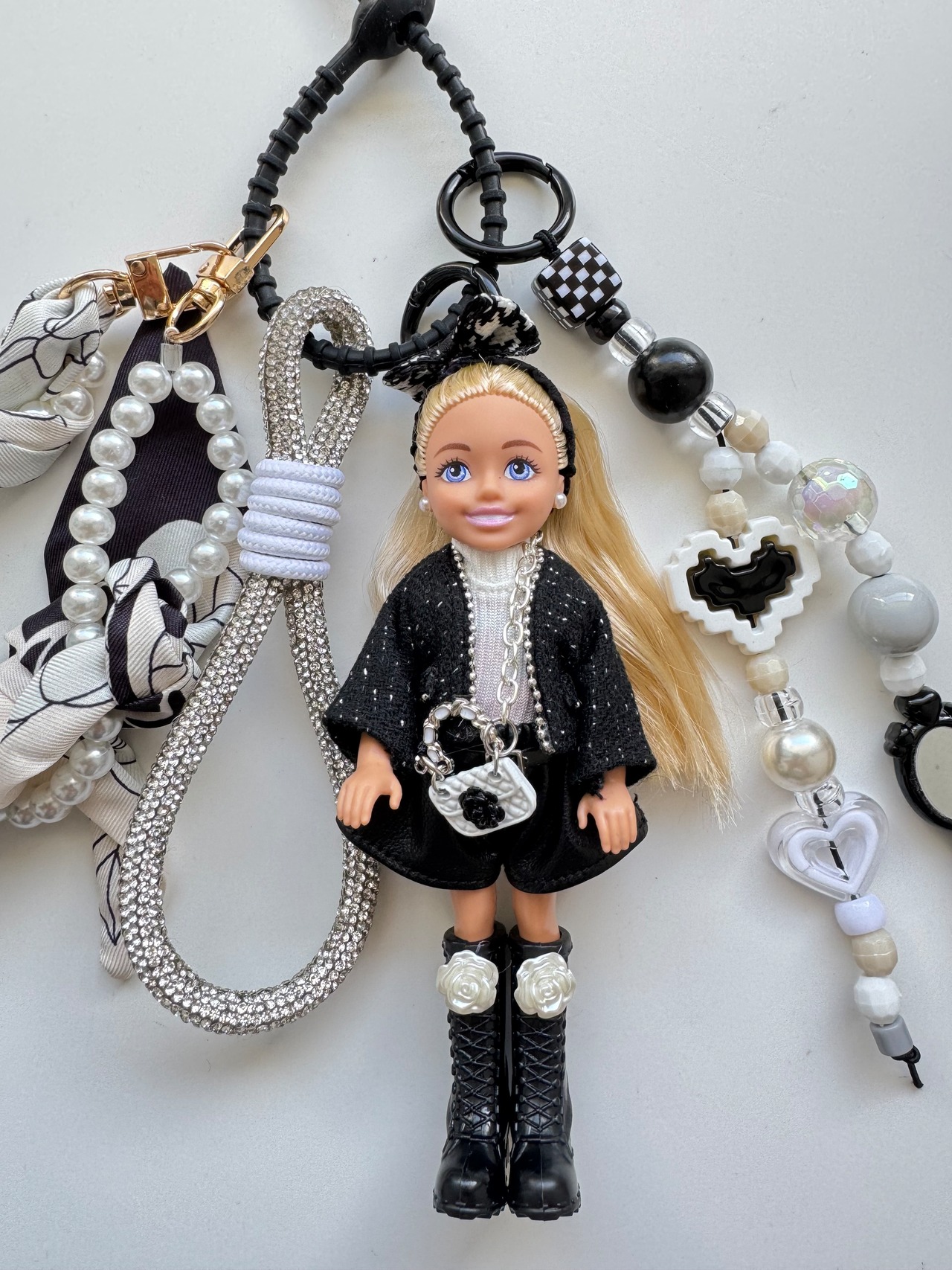 パーツは取り外しができますので、シンプルに人形だけ、その他キーホルダーと合わせてカスタマイズして、ぜひご自身だけのチャームをお楽しみください。