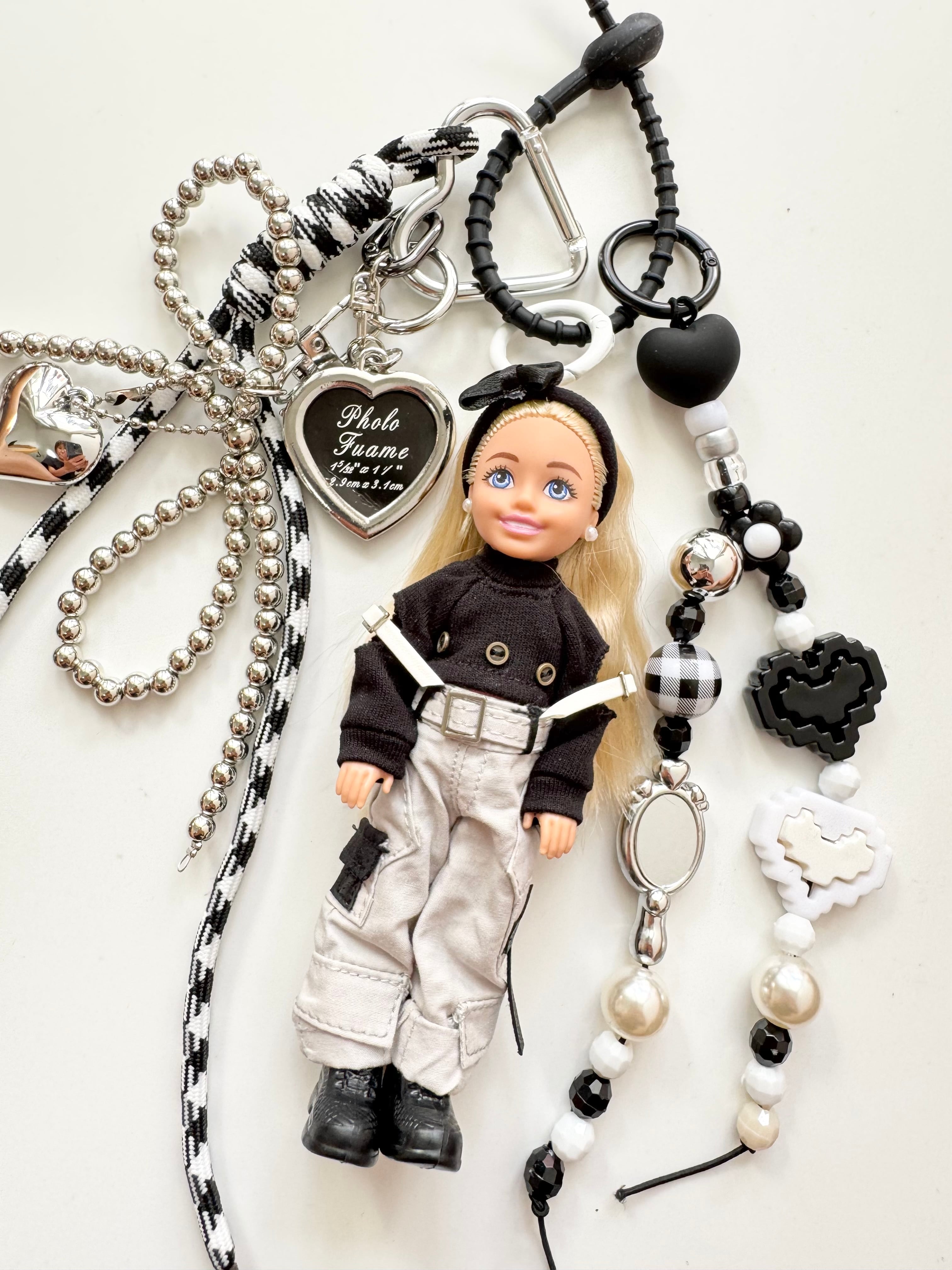 パーツは取り外しができますので、シンプルに人形だけ、その他キーホルダーと合わせてカスタマイズして、ぜひご自身だけのチャームをお楽しみください。