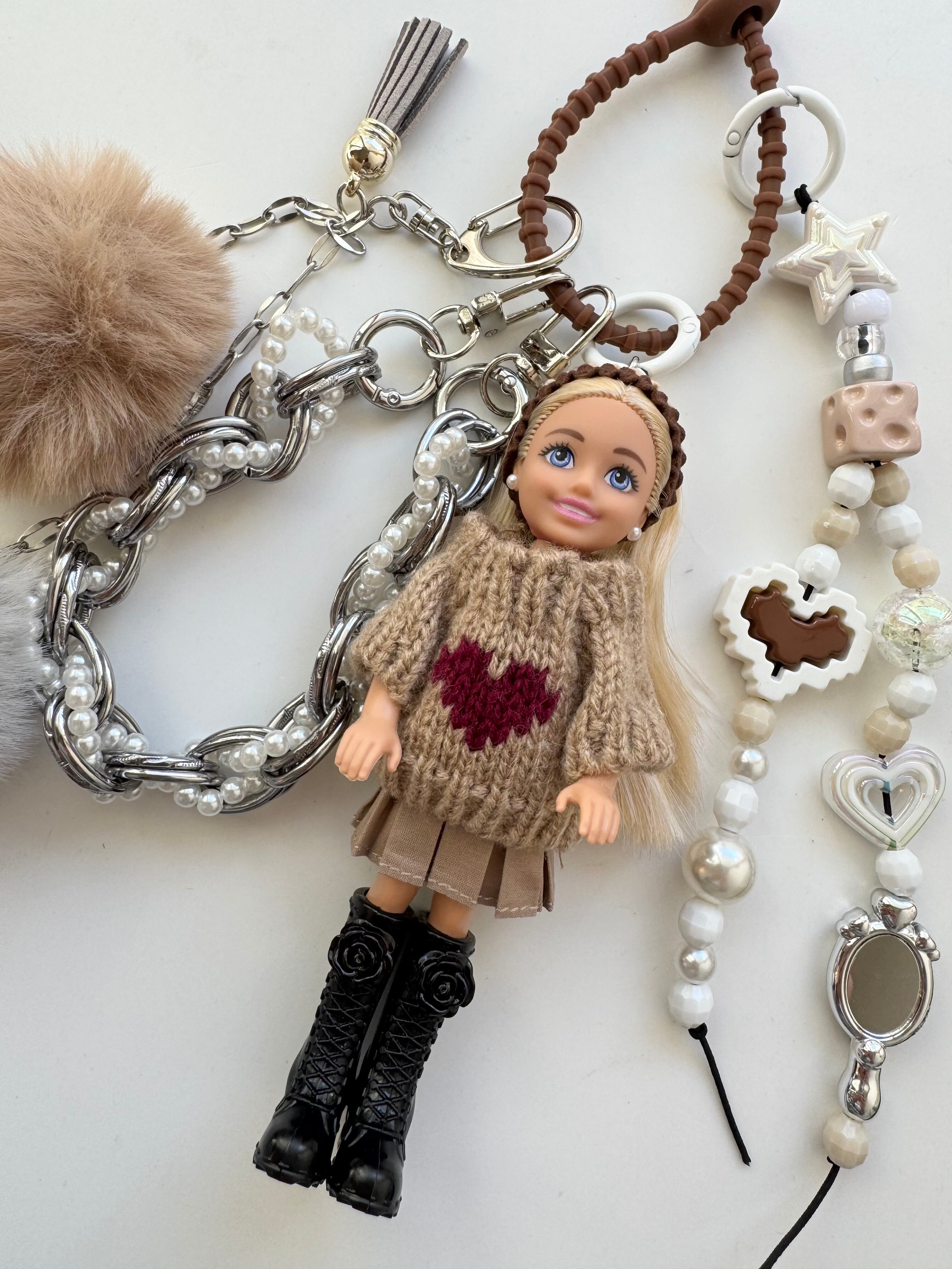 パーツは取り外しができますので、シンプルに人形だけ、その他キーホルダーと合わせてカスタマイズして、ぜひご自身だけのチャームをお楽しみください。