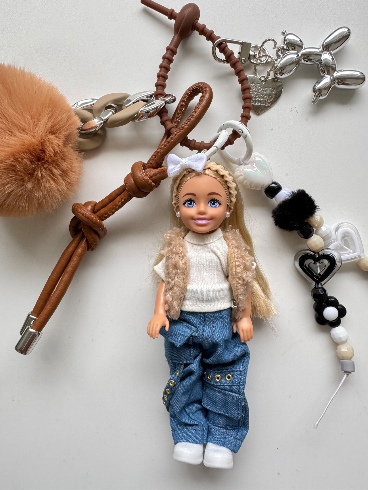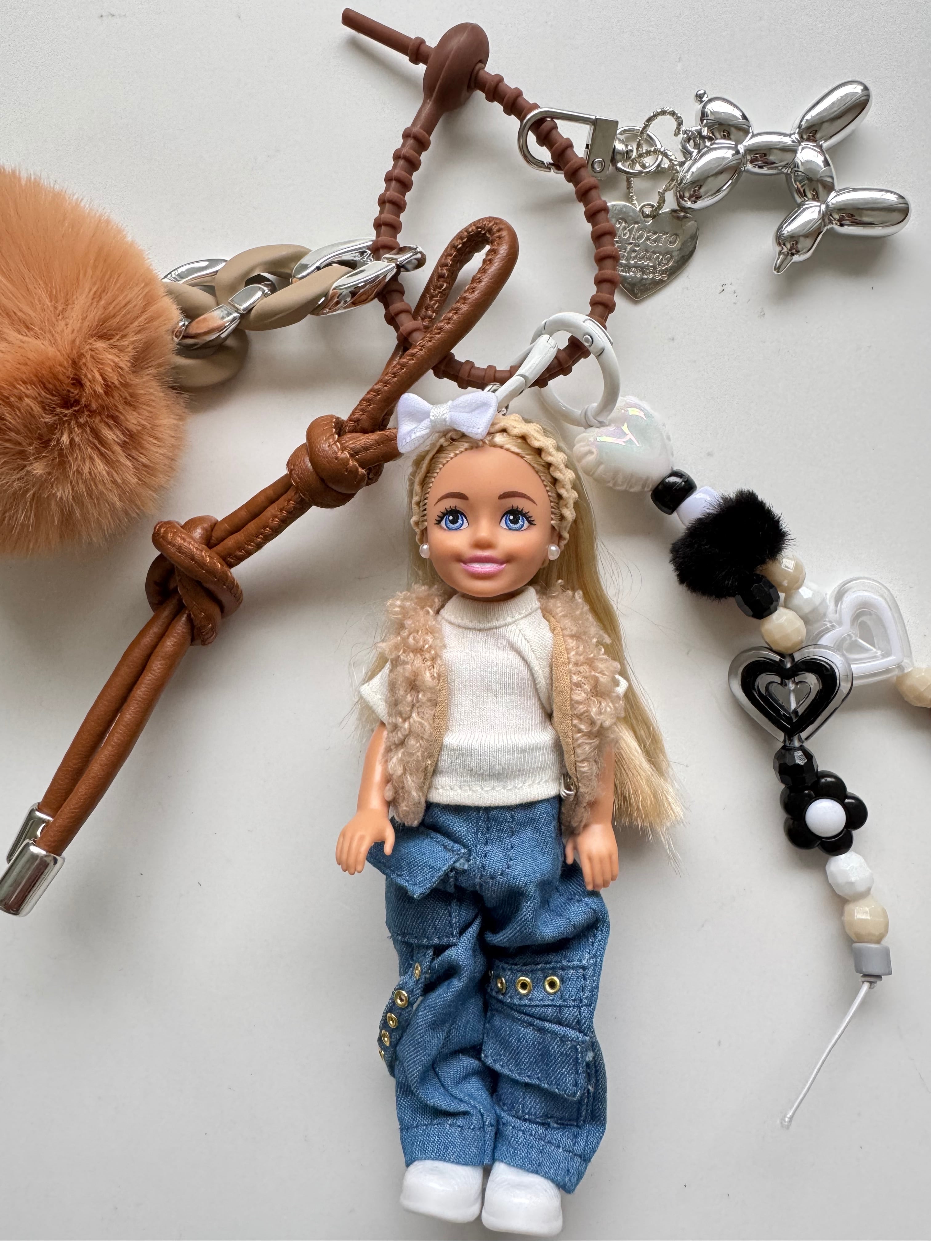 パーツは取り外しができますので、シンプルに人形だけ、その他キーホルダーと合わせてカスタマイズして、ぜひご自身だけのチャームをお楽しみください。