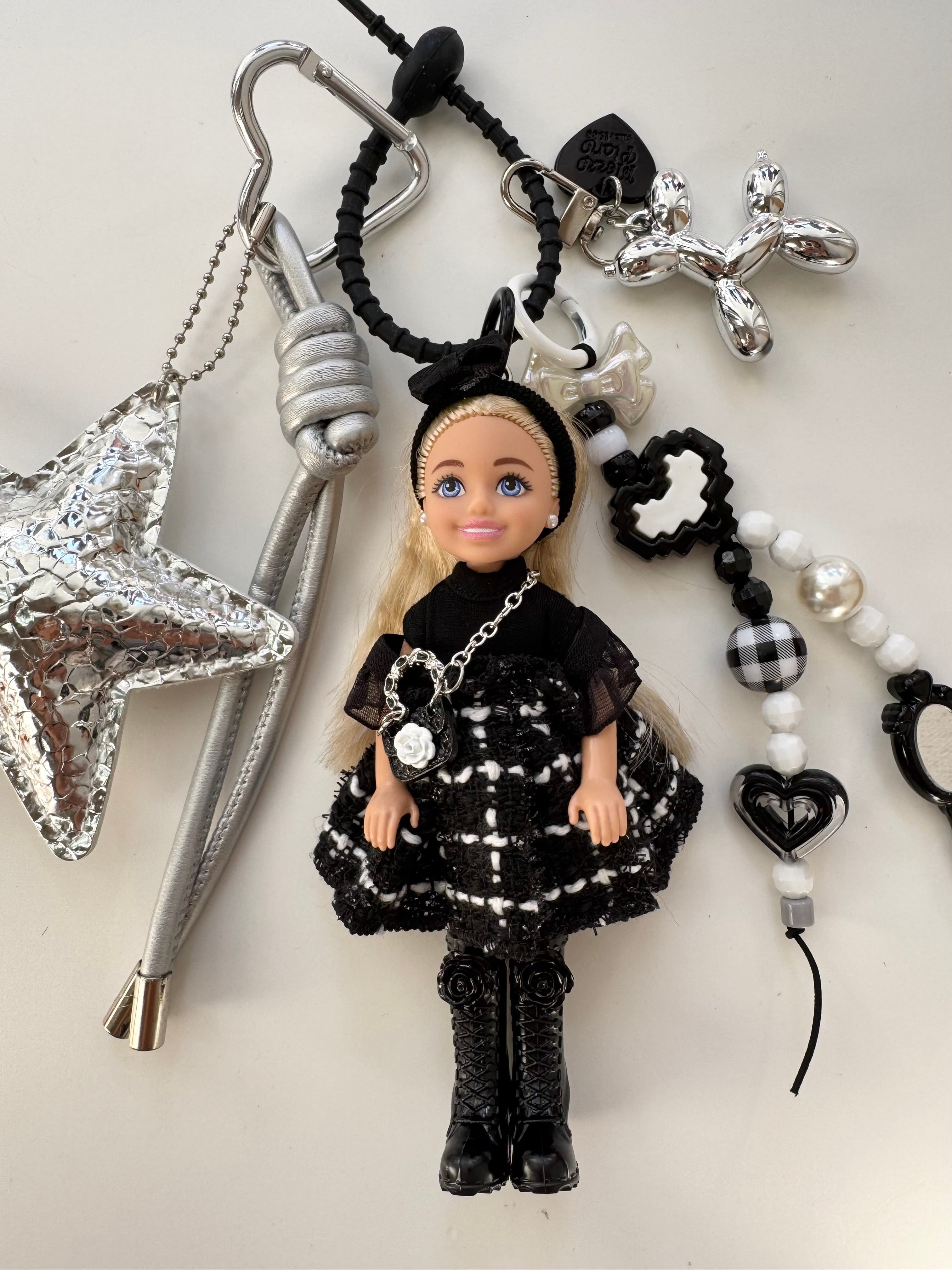 パーツは取り外しができますので、シンプルに人形だけ、その他キーホルダーと合わせてカスタマイズして、ぜひご自身だけのチャームをお楽しみください。
