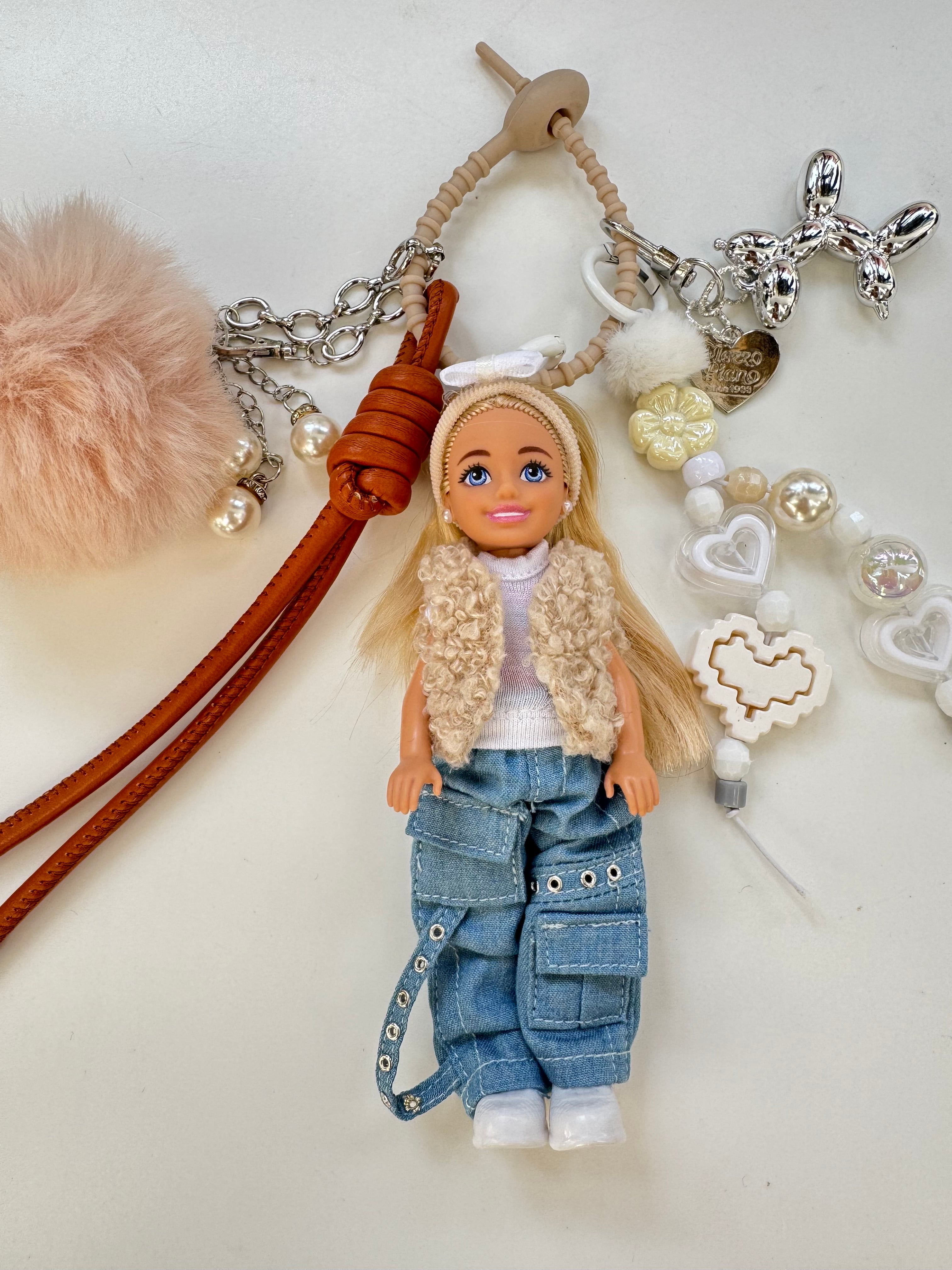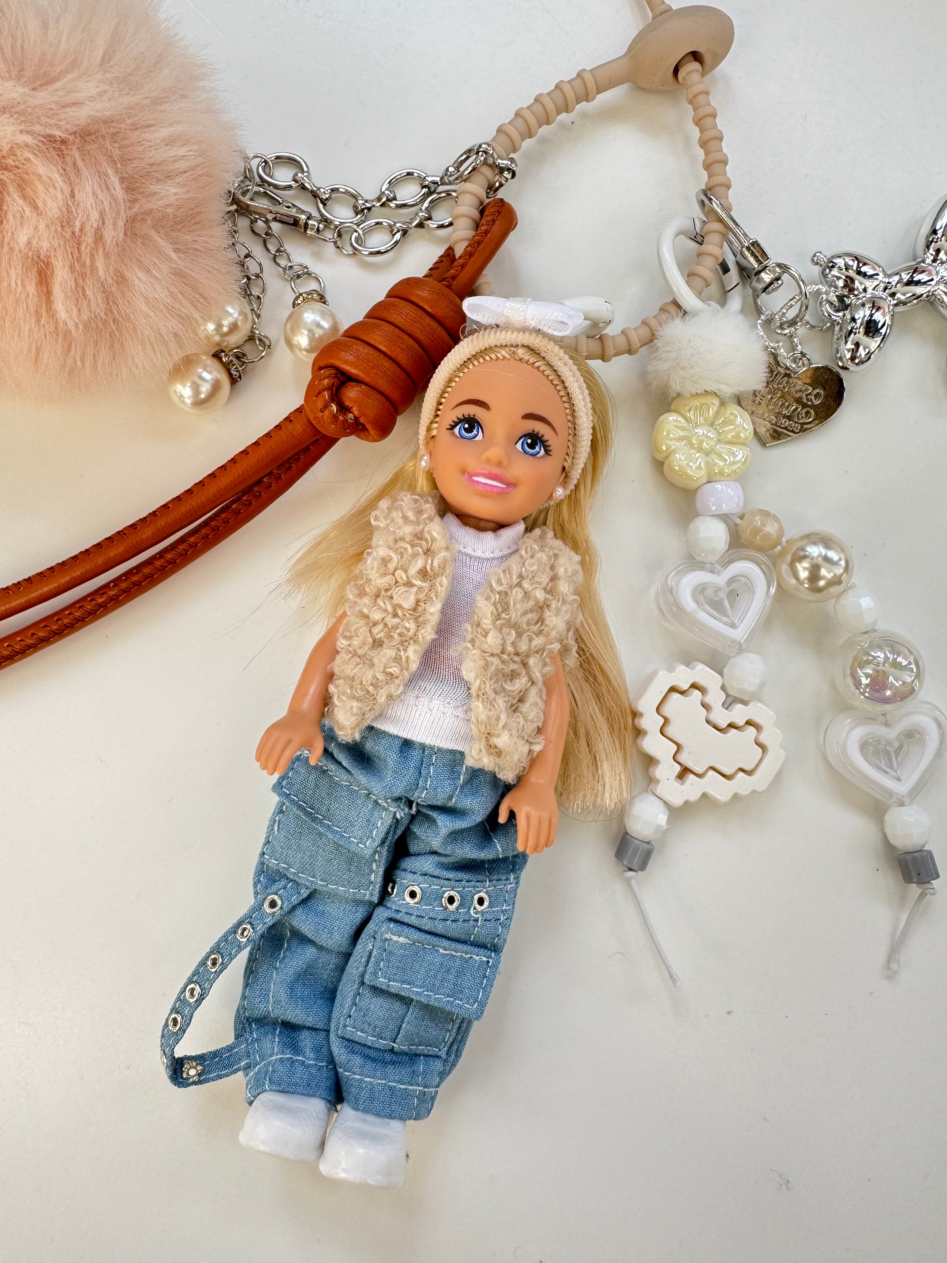 パーツは取り外しができますので、シンプルに人形だけ、その他キーホルダーと合わせてカスタマイズして、ぜひご自身だけのチャームをお楽しみください。