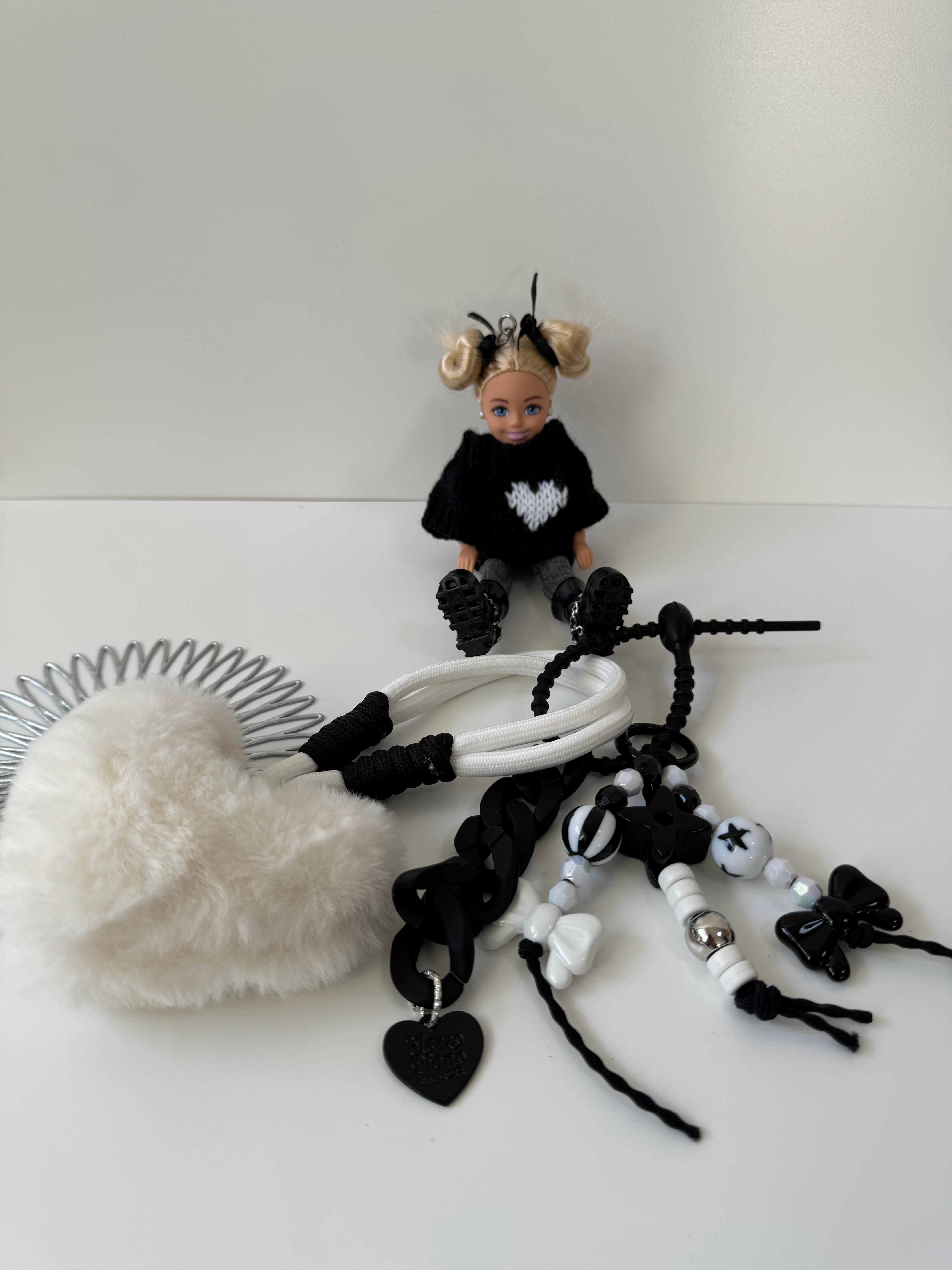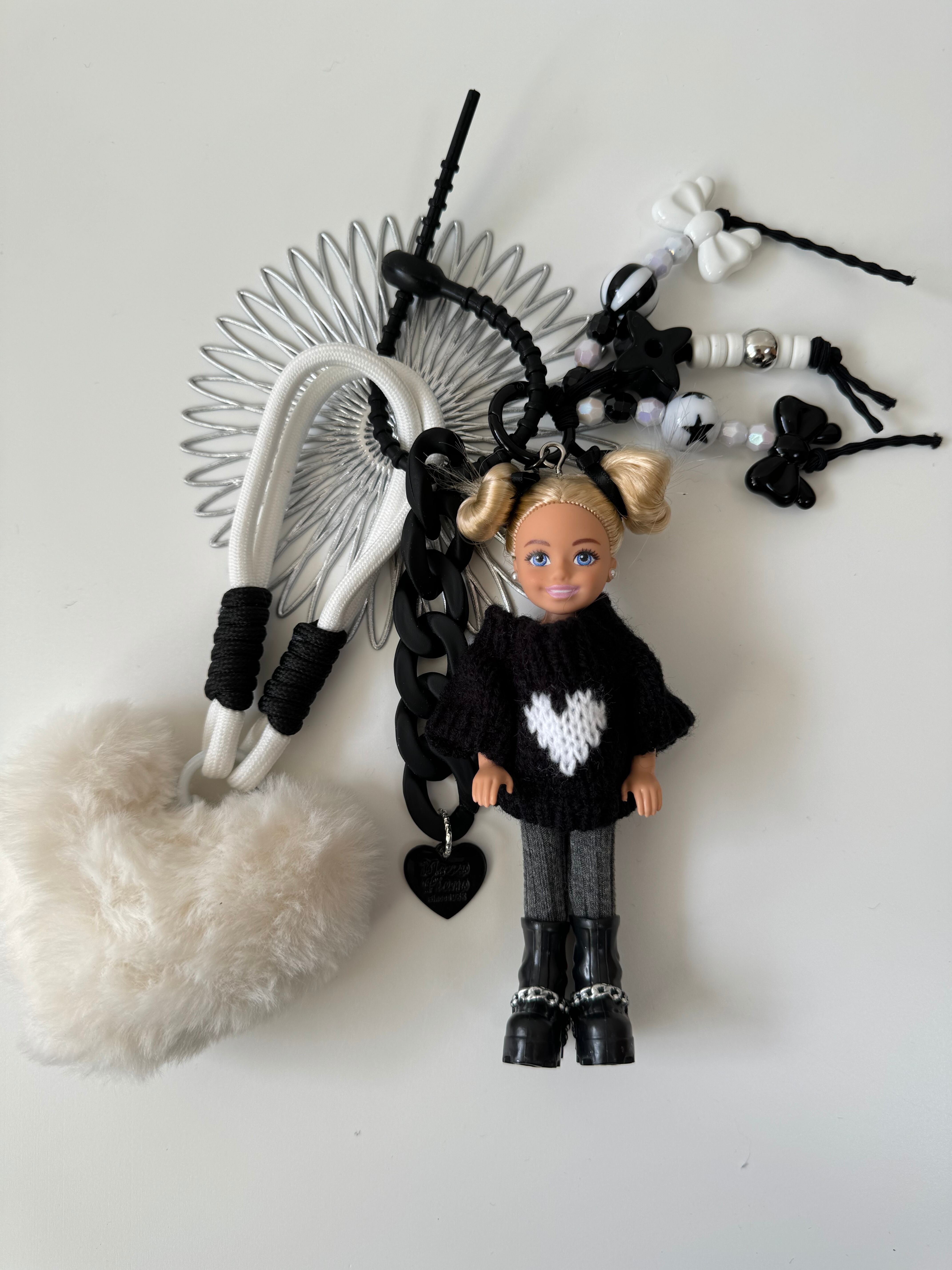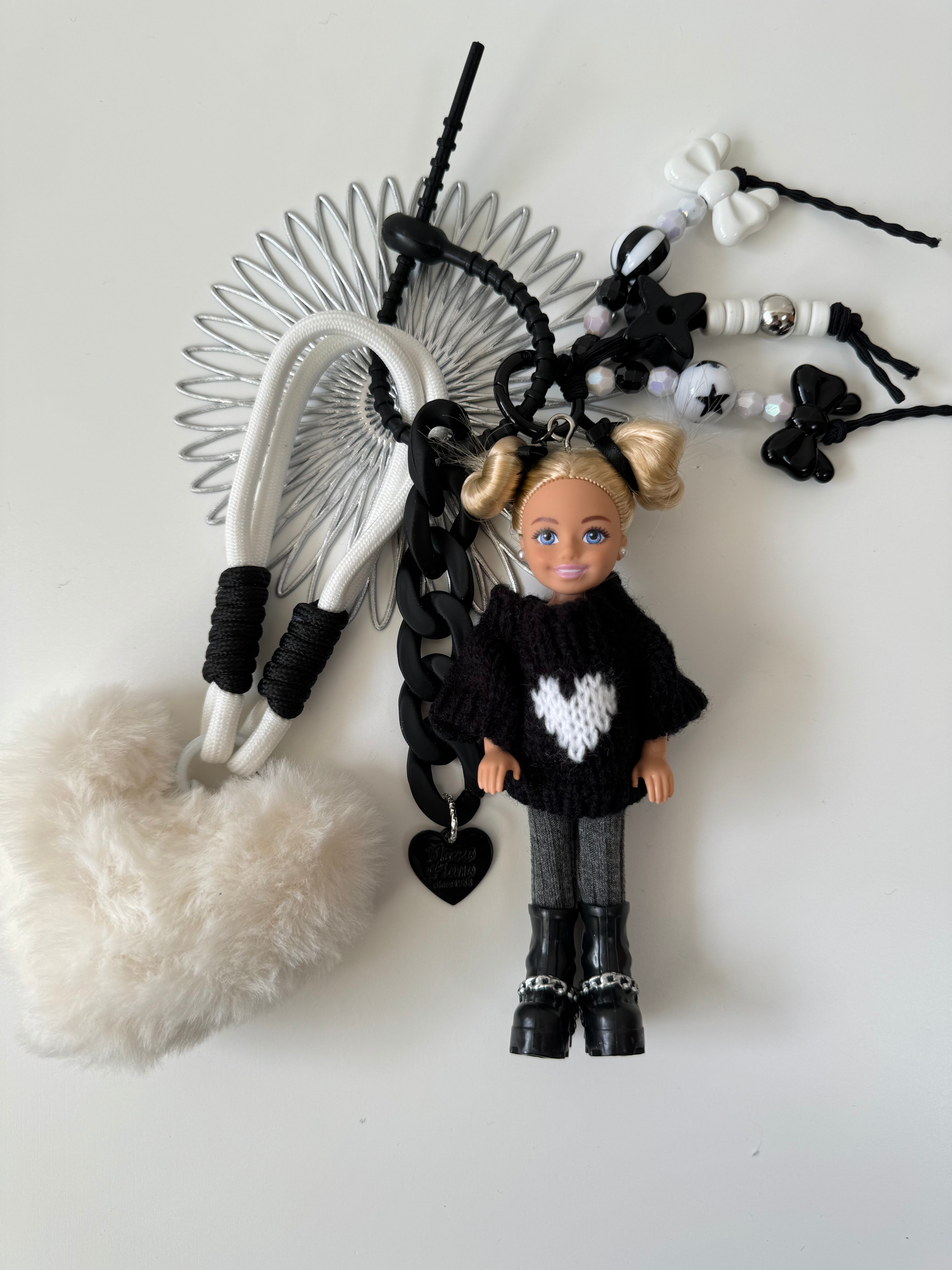 パーツは取り外しができますので、シンプルに人形だけ、その他キーホルダーと合わせてカスタマイズして、ぜひご自身だけのチャームをお楽しみください。