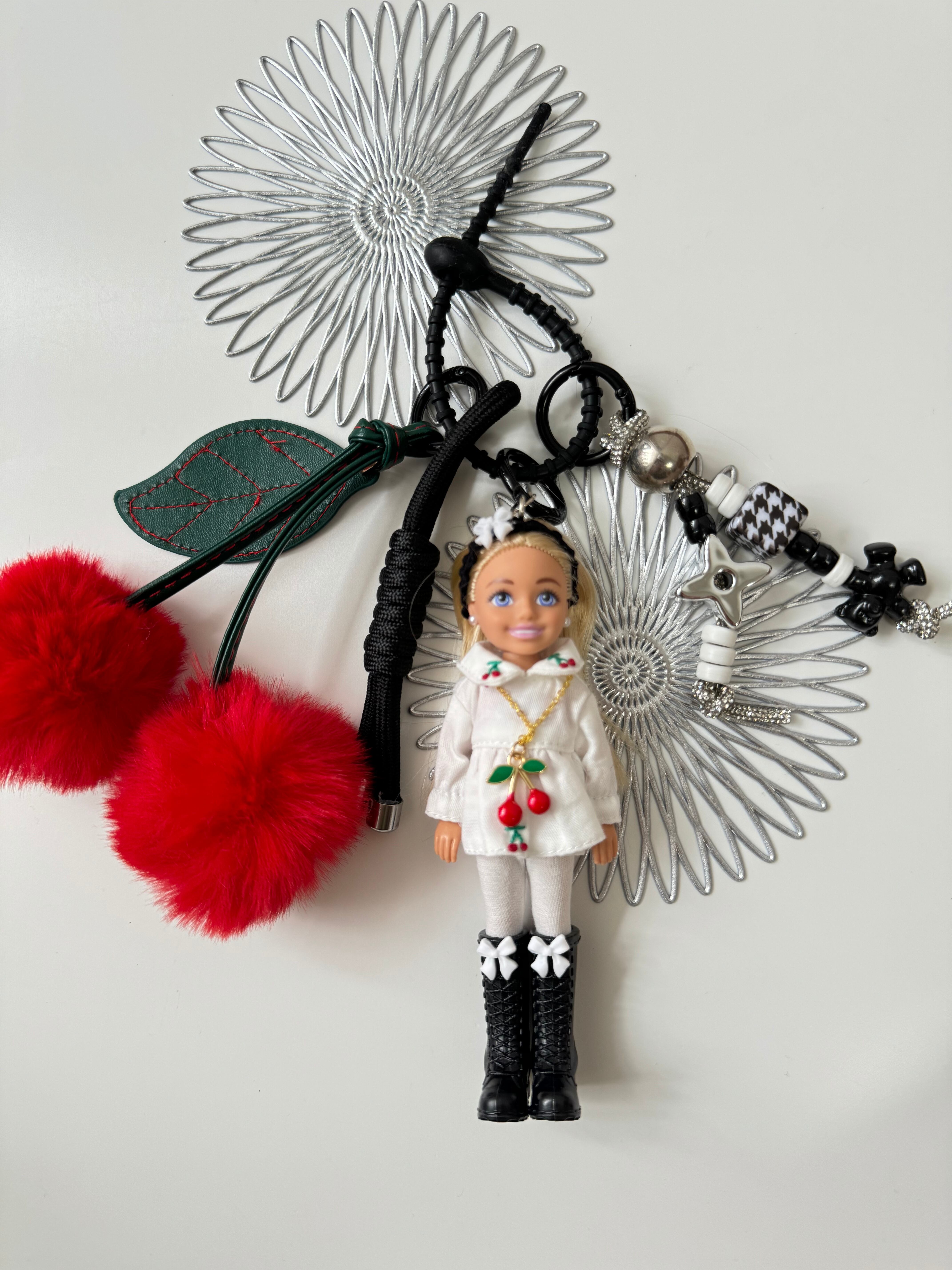 パーツは取り外しができますので、シンプルに人形だけ、その他キーホルダーと合わせてカスタマイズして、ぜひご自身だけのチャームをお楽しみください。