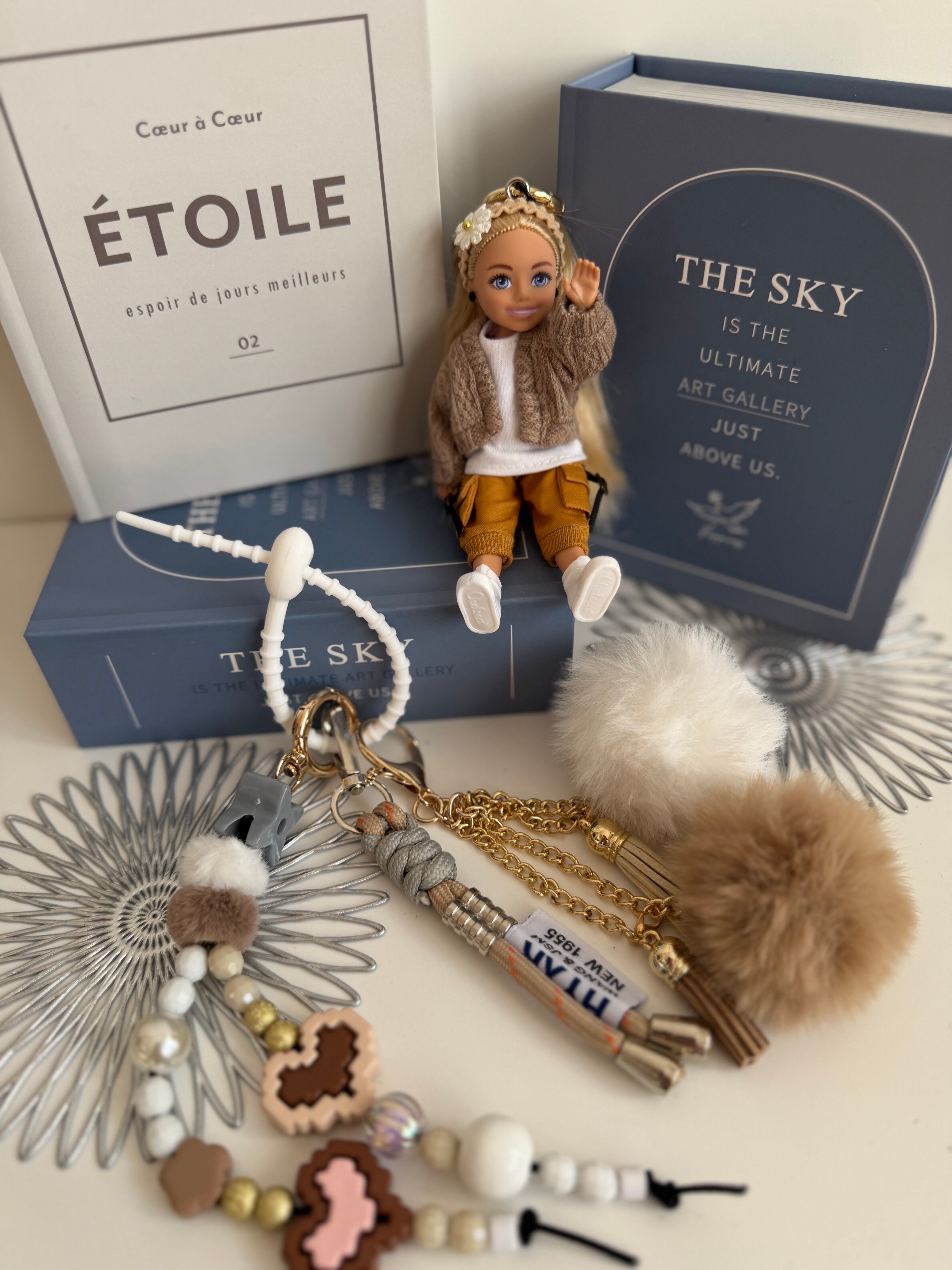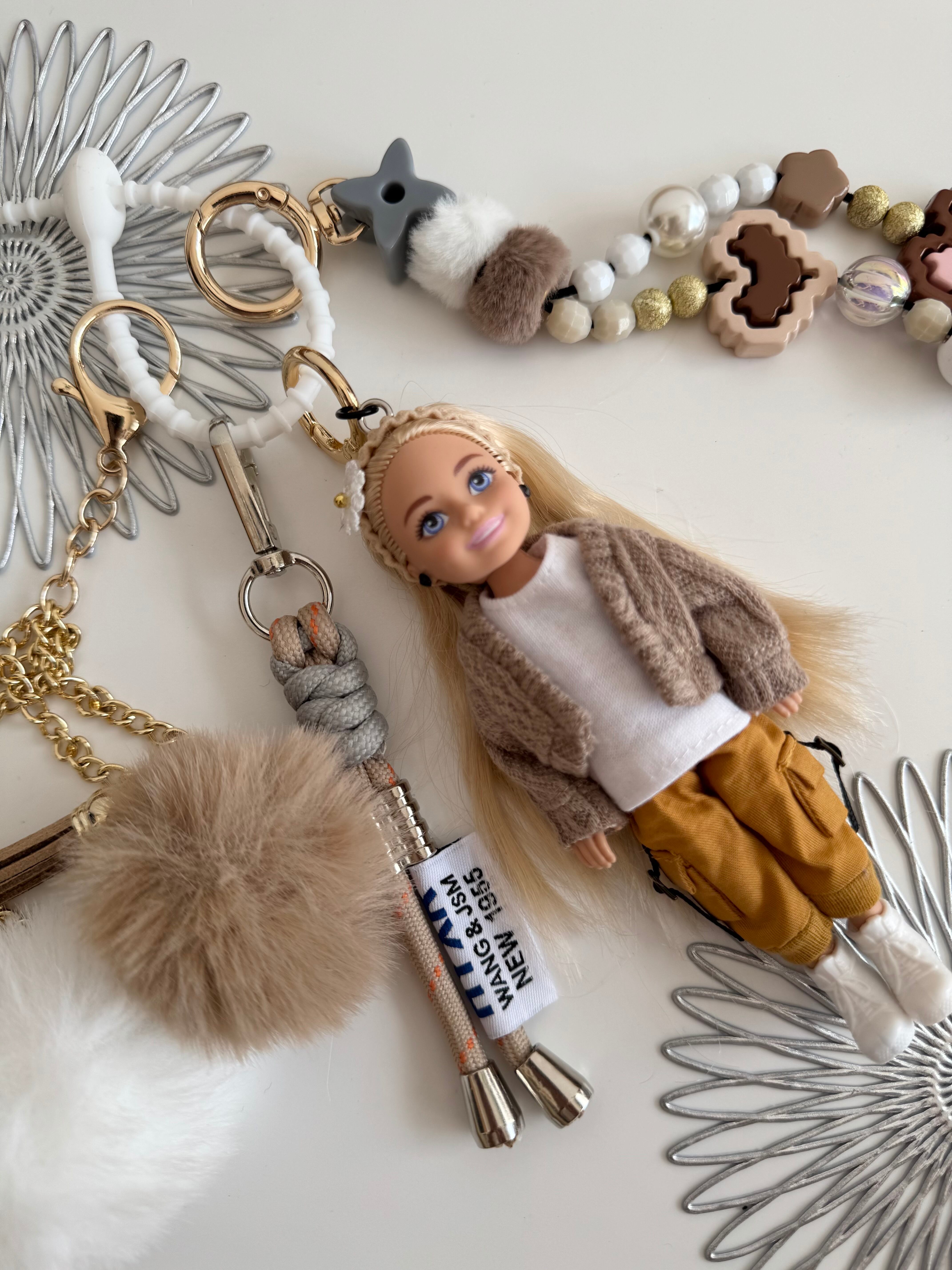 パーツは取り外しができますので、シンプルに人形だけ、その他キーホルダーと合わせてカスタマイズして、ぜひご自身だけのチャームをお楽しみください。