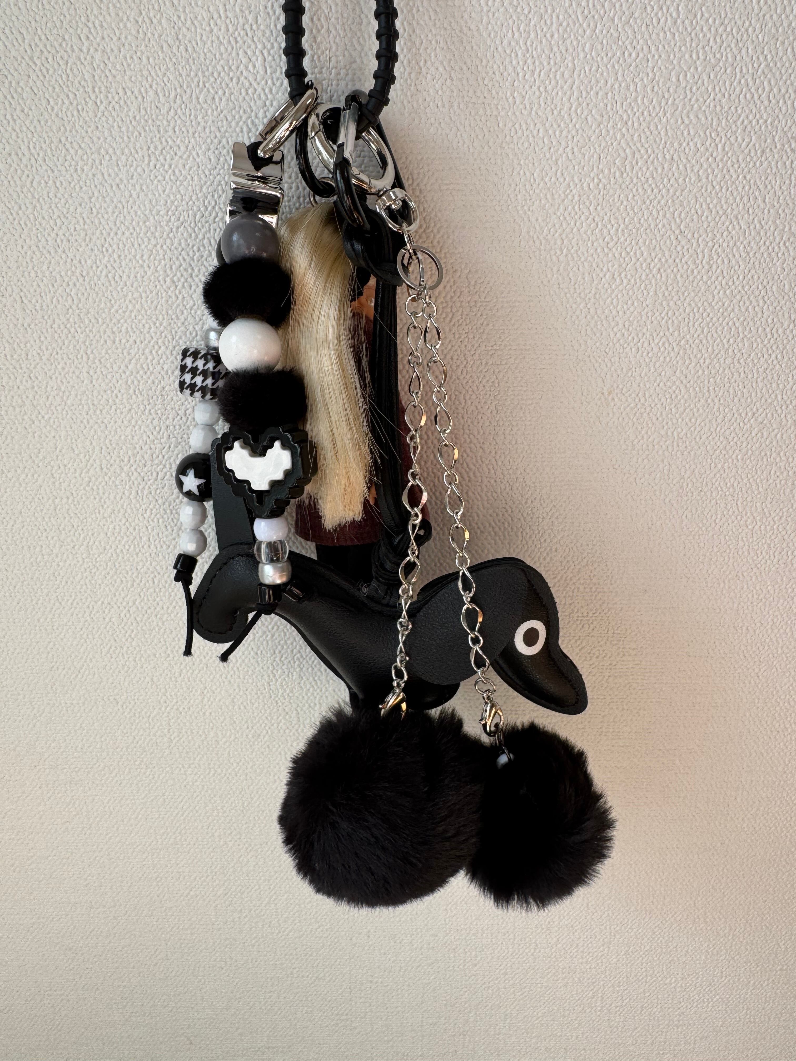 パーツは取り外しができますので、シンプルに人形だけ、その他キーホルダーと合わせてカスタマイズして、ぜひご自身だけのチャームをお楽しみください。