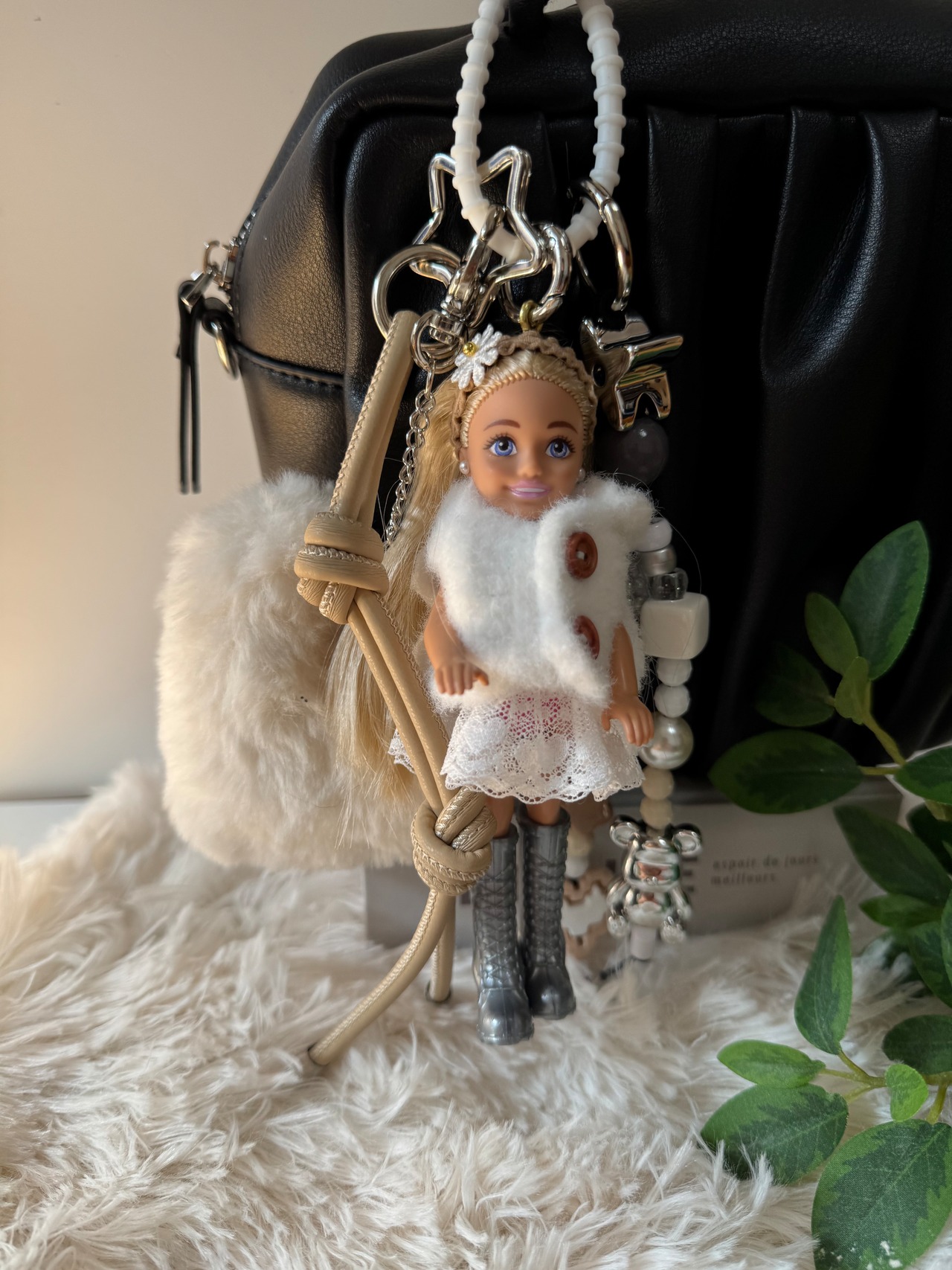 パーツは取り外しができますので、シンプルに人形だけ、その他キーホルダーと合わせてカスタマイズして、ぜひご自身だけのチャームをお楽しみください。